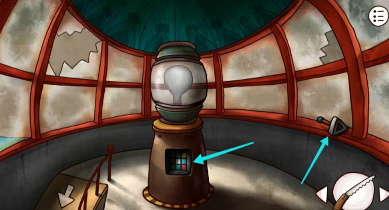 进入灯塔内部后,咱们需要先和看守人交谈获取密码。密码是北南西东东北,输入后就能打开大门。灯塔分为三层,在一楼可以收集铲子和拼图块,二楼能拿到鱼饵和锯子。别忘了和小男孩对话,他会给一些关键提示。走到顶层会发现窗户边有一把异形钥匙,这是修复电路的关键道具。电路谜题位于灯泡下方的一个盒子里,需要咱们调整红黄蓝三种颜色的电线。