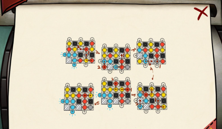 电线盒里有三种颜色的线路需要对应连接,灰色方块是不能移动的障碍物。先把灰色方块移到不影响操作的空位上,然后按顺序处理每种颜色的线路。黄色线路已经部分接通,亮起后会变成白色。处理红色和蓝色线路时要注意避开障碍物,按从左到右的顺序连接更不容易出错。如果卡住了可以点击右上角的重置按钮重新开始,多试几次就能找到正确路径。