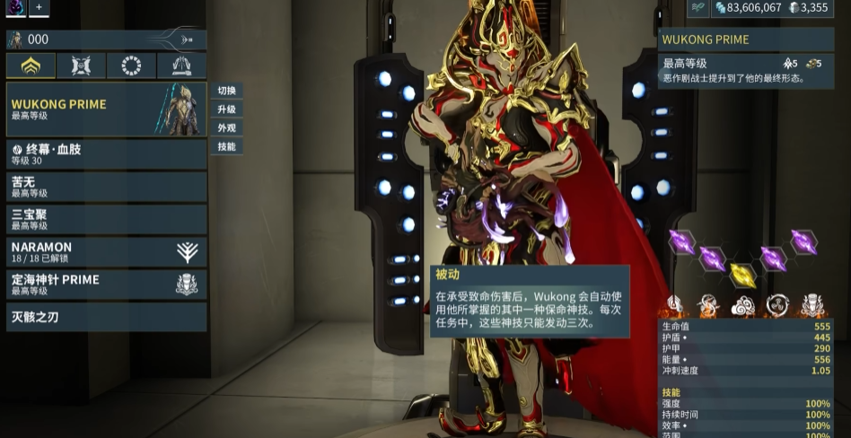 对于新手玩家,悟空Prime具备较高的实用价值。其技能组合适应多种任务场景,包括间谍、防御和歼灭等常规任务类型。虽然获取过程存在随机性,但通过持续参与裂隙任务或交易频道与其他玩家交换所需部件,仍可较为稳定地完成收集。