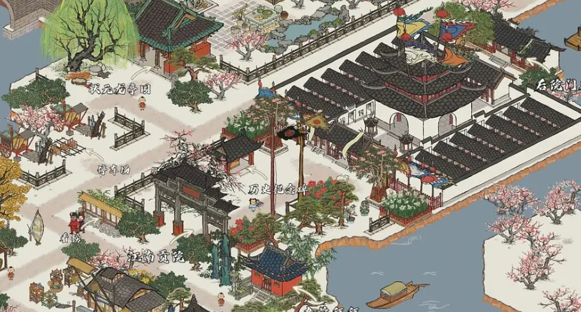 江乘里解锁后,其建设与规划便成为接下来的主题。这片区域的特点是江南多水路,故院落外江头上停着私家扁舟,因此在布局时可以充分考虑其临水特性。你可以在这里建造与漕运、码头相关的设施,也可以布置一些商铺和民宅,打造出一片繁华的滨水街区。建筑的摆放完全由你决定,但生产类建筑必须靠近道路才能正常工作。你可以通过长按建筑进入编辑状态,自由调整其位置和朝向。合理规划布局不仅能提高城市的功能效率,通过摆放装饰建筑提升环境值与繁荣度,更能塑造出独一无二的水乡景致。