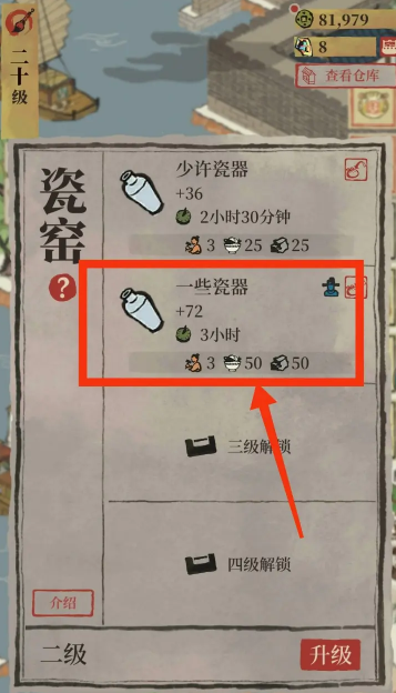 瓷窑建造完成后,玩家可以点击瓷窑进入生产界面,选择不同的生产模式,例如生产少许瓷器或大量瓷器,每种模式对应不同的生产时间和资源消耗。典型的生产过程需要消耗25个菜肴和25个黏土,产出36个瓷器,生产时间同样为2小时30分钟。玩家可以根据当前资源库存和需求调整生产计划,例如选择较短时间模式以快速获取少量瓷器,或选择长时间模式以批量生产。生产过程中,玩家可以随时监控进度,并在完成后收取瓷器,用于城市建设、贸易或其他任务。