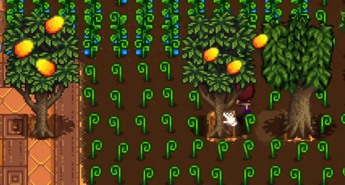 种植树木主要分为追求美观的观赏树、提供稳定产出的果树以及用于获取木材和加工资源的实用树木。枫树在秋季会变为火红色,是农场里极具观赏性的选择,能为秋季农场增添浓郁的丰收氛围。橡树则四季常绿,形态稳重,适合打造经典的农场景观。若想营造独特氛围,造型别致的蘑菇树是个不错的选择,它在春夏秋三季都能保持旺盛的生命力。对于追求实用性的玩家,松树笔直挺拔,能提供大量优质木材,而桃花心木虽然生长较慢,但木材价值更高。苹果树、桃树、橙树等果树则属于长期投资,成熟后能在对应季节持续产出果实,既可出售获利,也能用于恢复能量或送礼。