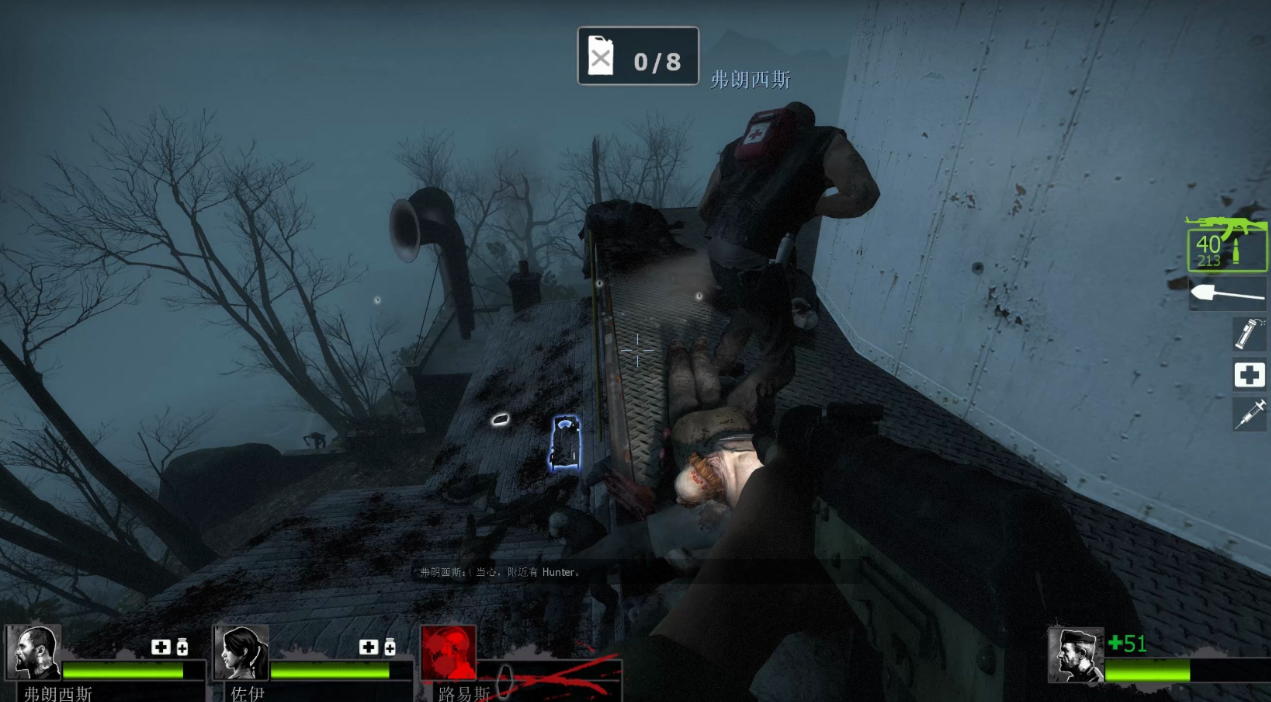 武器选择方面,近战武器如消防斧能有效清理近身僵尸,远程武器推荐带瞄准镜的步枪应对特殊感染者。医疗包建议留在最后阶段使用,因为AI队友会在发电机重启时集中受到攻击。若发现AI卡在某个位置,可以对着他们射击来引导移动方向。