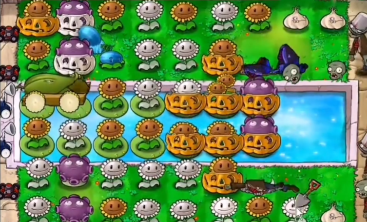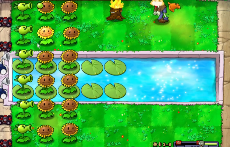 泳池关卡作为游戏第三世界的核心场景,其特点是新增两条水道,玩家需利用睡莲叶或特定水生植物构建防御体系。开局必须优先种植向日葵保证阳光供应,陆地前两排用于阳光生产,后三排布置攻击植物。水路需在睡莲叶上种植豌豆射手或西瓜投手等远程单位,同时用大蒜引导僵尸集中受击。针对潜水僵尸和气球僵尸等特殊敌人,需提前准备火爆辣椒、三叶草等针对性植物,并注意南瓜头保护关键植物。
