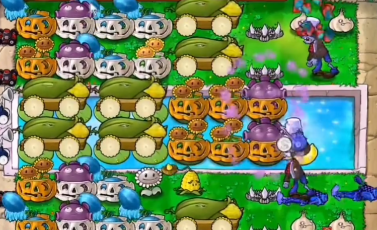 中期发展阶段需强化火力与减速控制,冰西瓜是核心选择,可同时对陆地和水路僵尸造成范围减速。泳池中央位置推荐种植猫尾草,其自动追踪特性可覆盖多路线攻击。应对高血量僵尸时,地刺王和玉米加农炮是必备选项,前者拦截雪橇车,后者提供高爆发伤害。需注意在泳池两侧布置高坚果或忧郁菇,防止僵尸突破防线。