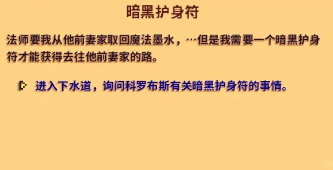触发巫师前妻任务的前提是完成任意一条主线任务,包括社区中心所有献祭或乔家超市的捐钱项目。达成条件后,前往地图最上方的铁路区域会自动触发剧情,巫师会请求你帮忙取回魔法墨水,并提示需要先找到暗黑护身符才能进入女巫沼泽。这一任务链的关键在于探索突变虫穴和与下水道NPC科罗布斯的互动。