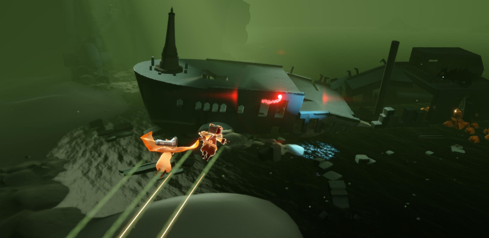 沉船图是暮土最特别的隐藏区域,从四龙图右侧山洞进入就能看到巨型沉船。船身内部藏着光之翼和先祖,但要注意船尾的管道会突然喷出黑水造成伤害。魔法季地图则在初始城墙右侧海岸,坐小船就能到达。这两个地方都有额外烛火可以收集,适合想探索的崽崽们慢慢逛。