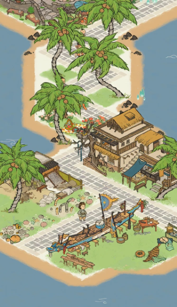 基础建设的完成,玩家可以进一步着眼于椰子岛的扩建与奇观的修复工作。解锁椰子岛上的新地区需要消耗名为椰子木的材料,而修复岛上的奇观宝船队则需要同时消耗椰子木和饮用水。椰子木的获取途径通常是通过大地图中的船运系统,或者派遣盐商向游戏内的限时活动地点运送物资以换取积分进行兑换;饮用水则相对直接,可以在椰子岛上找到名为大志的居民,直接使用铜钱向其购买。