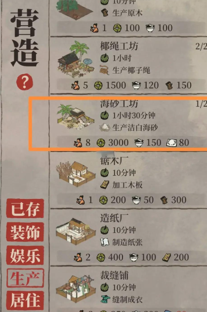 成功登岛开启建设的第一步,是获取并理解岛上的核心资源体系。登岛后,玩家可以委派居民前往椰子岛上的限定建筑椰绳工坊开展椰贝贝的生产,这是岛上特有的资源。岛上每日有固定的资源采集点,例如椰子多多树木每日可供采摘数次,以获得椰子壳。建设岛屿的核心目标之一是修复全新的宅邸海岛别苑,其所需的关键修复材料为在椰绳工坊生产的椰子绳,以及在海砂工坊生产的洁白海砂。
