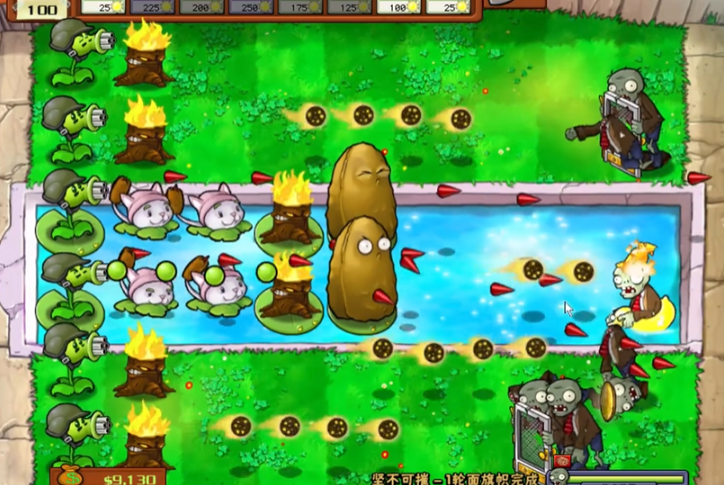 开局快速铺设双头向日葵或阳光菇以最大化阳光收益,经济区通常放置在第1至2列,随后在第3至4列部署基础防御植物如卷心菜投手或豌豆射手。水路第1列种植莲叶并搭配输出型植物,确保水域防线稳固。陆地第5至7列是关键防御带,混合种植高伤害植物如三线射手、冰西瓜以及范围伤害的忧郁蘑菇。冰西瓜的减速效果至关重要,能有效延缓僵尸群推进速度,为后方植物争取输出时间。忧郁蘑菇应靠前放置以覆盖更多区域,同时注意留出空格防止矿工僵尸偷袭。水路同步强化火力,搭配穿透性植物如猫尾草或玉米加农炮。