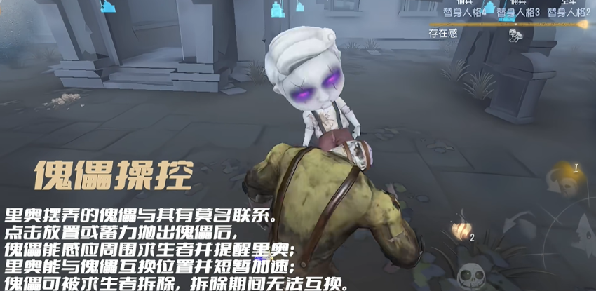 厂长的技能机制围绕怨魂狱火与传火展开,其玩法精髓在于对傀儡的精准运用。厂长通过追击、被眩晕等行为积累怨愤形成怨火,消耗怨火可释放自动追击求生者的怨恨虚影,或为傀儡传火使其活化。实战中,傀儡的核心用途包括守尸、守密码机与辅助追击。将傀儡放置在狂欢之椅或关键密码机附近,可以形成持续的视野监控与威慑;通过长按技能将傀儡投掷至远处,再与傀儡交换位置,能实现超远距离位移和突袭,这是厂长进行快速转点与拦截的关键技巧。将多个傀儡部署在大门或遗产机关键位置,配合传送特质,能在游戏后期形成强大的控场网络。