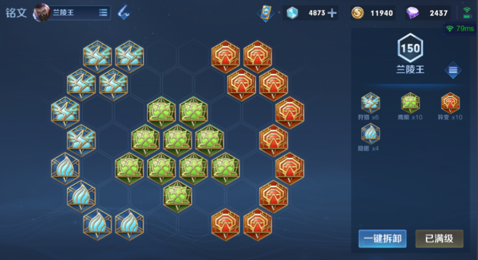 铭文搭配选择10异变、10鹰眼、10隐匿的百穿组合,高额物理穿透让前期伤害最大化,移速加成进一步强化游走能力,实战中兰陵王需利用隐身特性绕后,避开敌方视野与辅助探草,优先针对敌方射手、法师等无位移脆皮,连招以隐身接近、二技能标记控场、大招突进、一技能补伤收尾为主,触发二技能回血效果维持状态,抓人时避免正面硬刚,在河道草、边路草等视野盲区埋伏,等待敌方走位失误再出手,成功击杀后快速转线控龙、入侵敌方野区,扩大经济优势,压制敌方发育节奏。