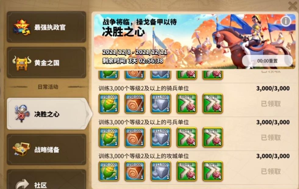 参与联盟活动与战斗能获得大量额外粮食补给,完成联盟日常任务、赛季挑战与领地争夺战,可直接领取粮食奖励,开启以战养战模式后,击杀敌方部队会通过邮件持续发放粮食资源,联盟宝箱与活动礼包中也常包含大额粮食,积极参与联盟集体行动,既能增强联盟凝聚力,又能快速补充粮食储备,应对大型战争与建筑建造的消耗。