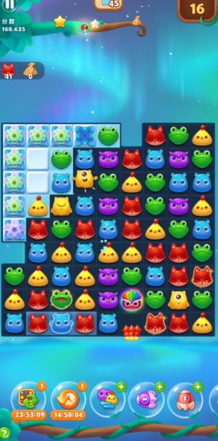 雪怪清场后,关卡布局变得开阔,此时要快速利用剩余动物合成特效,优先凑出直线特效、爆炸特效,同时留意五连动物合成闪电鸟,闪电鸟是后期清冰神器。移动木门会随步数切换位置,要时刻观察木门遮挡区域,优先消除木门附近的冰块,避免被遮挡导致步数浪费。遇到密集冰块区,用直线特效搭配爆炸特效组合,一次可清除多排多层冰块,效率远超普通消除,每一步都要确保能联动消除多个冰块,不做无效操作。