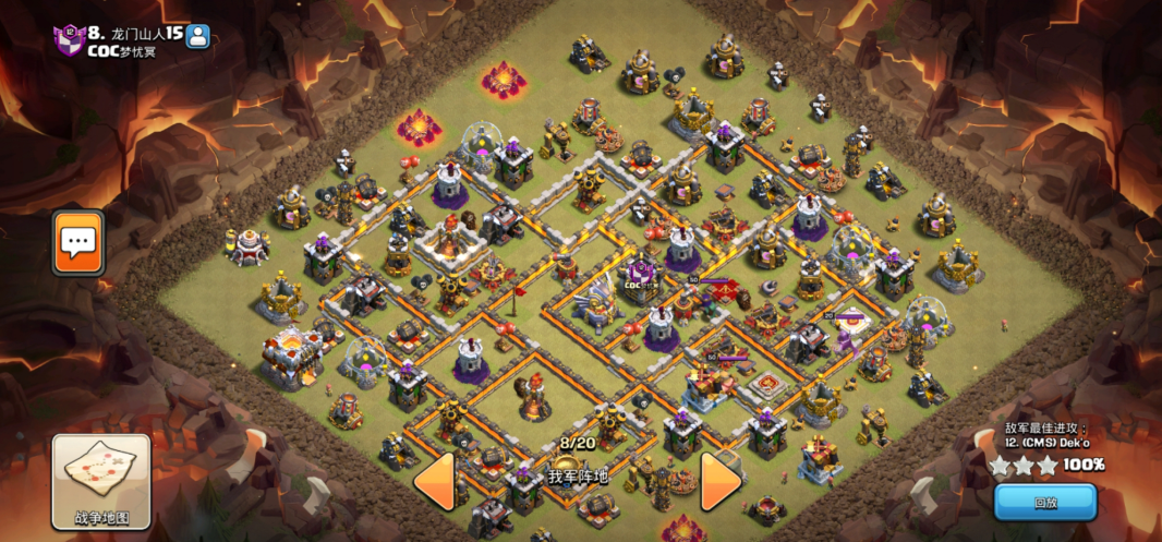 防御过程中需保持火力无死角覆盖,避免出现单侧防御薄弱的情况,X连弩设置为地面模式,全程参与对皮卡的压制,撼地巨石放置在前沿位置,利用范围伤害与仇恨吸引能力,阻挡皮卡推进并配合周边防御集火。通过建筑引导、城墙分割、陷阱限制、援军拉扯与核心防御输出的协同配合,可完整克制皮卡的进攻节奏,即便面对满级皮卡搭配狂暴法术的组合,也能有效守住阵型,减少资源与星级损失。