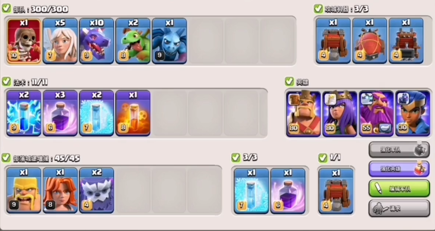 兵种搭配是援兵防御的核心,低本阶段城堡空间有限,优先选择单兵作战能力强的单位,龙宝宝凭借狂暴被动与对空对地能力,能快速清理胖子、气球等常见进攻单位,搭配少量弓箭手可形成远近配合,延长敌军处理时间。中本阶段解锁雷电飞龙后,单条雷龙成为通用优选,连锁溅射伤害可快速瓦解天女、胖法、野猪等集群部队,迫使对手使用毒药法术或大量兵力清理,富余空间可补充亡灵提升对空能力。高本阶段更注重控制与坦度,熔岩猎犬搭配猎手或超级亡灵,既能吸收大量伤害,又能精准针对敌方英雄与核心单位,冰人组合则能通过冰冻效果限制敌军推进,配合女巫召唤的骷髅兵,可持续牵制地面部队,让防御建筑持续输出。