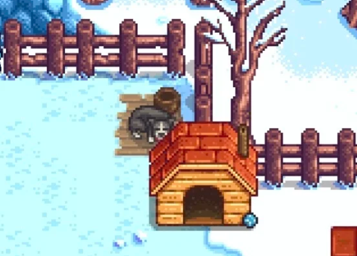 狗窝是星露谷物语中与宠物狗相关的功能性建筑,主要作用是作为宠物狗的休息场所。狗本身作为农场宠物,与猫的功能性相同,都是通过玛尔妮在游戏开局第五天赠送获得,但选择养狗后其活动范围会围绕狗窝展开。狗窝无法通过玩家主动建造或移动位置,属于农场初始固定建筑,其外观默认位于农舍右侧区域。