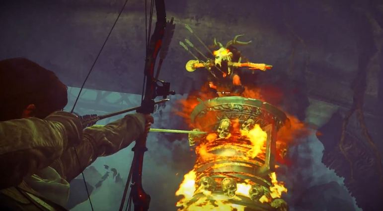 进入邪恶溪谷区域后,玩家会因花粉影响陷入幻觉状态,需跟随剧情指引前进。幻觉中会重现劳拉父亲的死亡场景,随后女巫登场并操控骷髅狼群攻击。这些狼移动速度快且血量较高,但弱点在面部骷髅面具,用枪械可一击毙命。击败狼群后女巫会再次出现并将劳拉推下瀑布,之后进入解药制作环节。