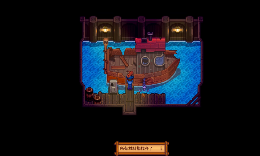 首先得完成社区中心的全部献祭任务或者乔家商店的发展项目。完成后第二天会收到渔夫威利的信件,邀请你去他的鱼店看看。这时候直奔海滩,在威利的鱼店里会发现他身后多了一扇神秘的黑门,点进去就能看到一艘需要修理的破船。